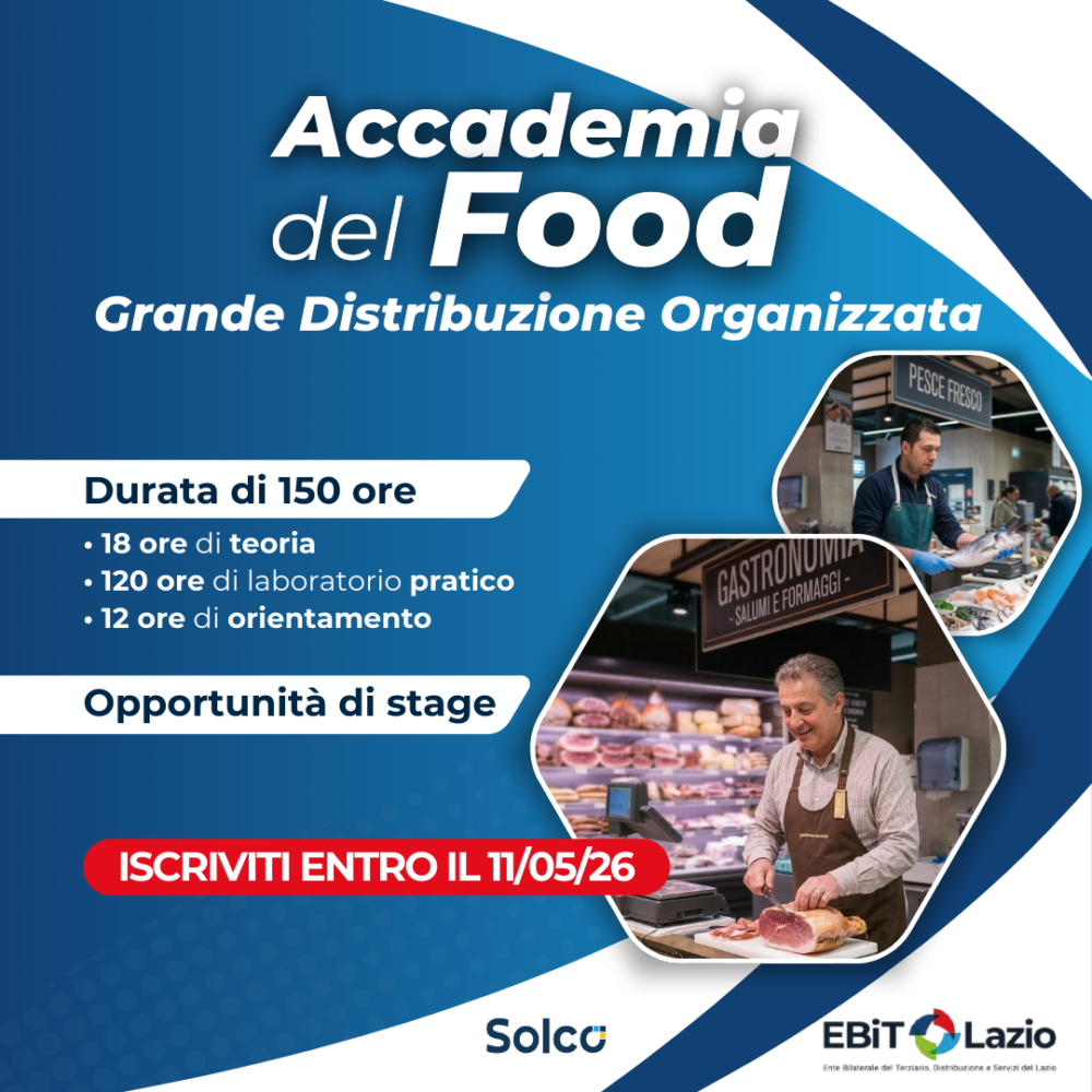 L’EBIT Lazio – Ente Bilaterale del Terziario di Roma e Lazio, presenta il nuovo corso Accademia del food nella GDO – Grande Distribuzione Organizzata.